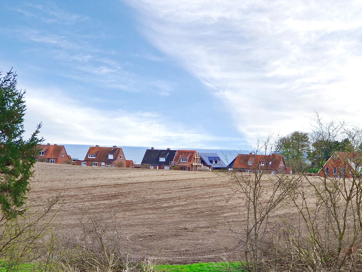 Aus dem Dachfenster des oberen Schlafzimmers können Sie sogar bei gutem Wetter einen kleinen Blick aufs Meer ergattern.