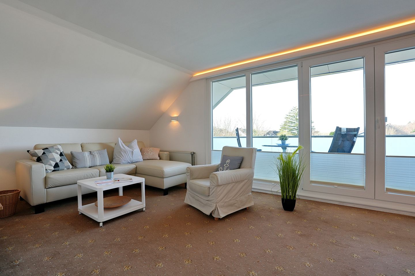 Die geräumige 2-Zimmer-Wohnung ist für 2 - 3 Personen eingerichtet. Sie befindet sich im 1. Obergeschoss mit großem, möblierten überdachten Süd / West-Balkon und Außenrolladen.
