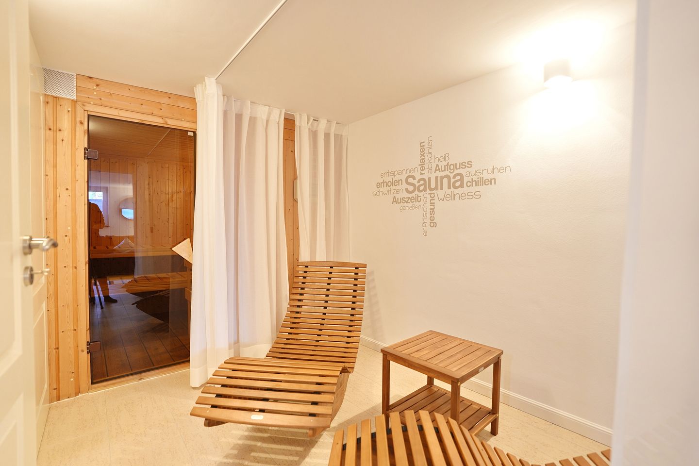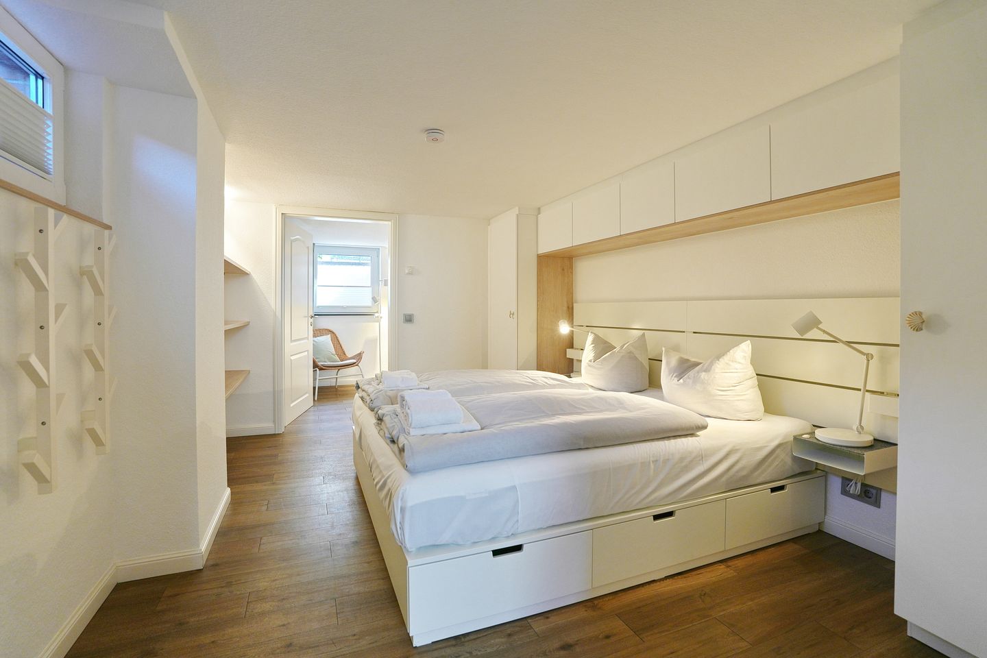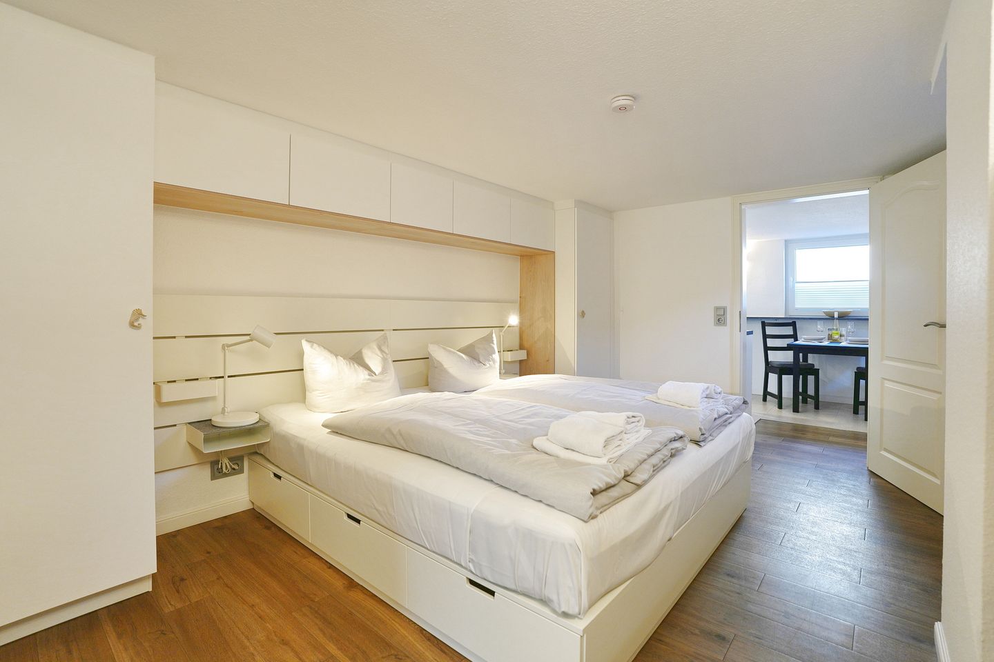 Im Untergeschoss (separater Eingang, keine Verbindungstür vom Haus) befindet sich ein individuelles und geräumiges 2,5-Zimmer Appartement (58 m²) mit eigener Sauna (kostenfrei). Das Wohnzimmer mit Flatscreen-TV lädt zum Verweilen ein. Der Schlafraum ist mit einem Doppelbett ausgestattet. Von dort aus gelangen Sie durch eine Tür in ein zweites kleines Schlafzimmer, das mit einem Einzelbett ausgestattet ist.