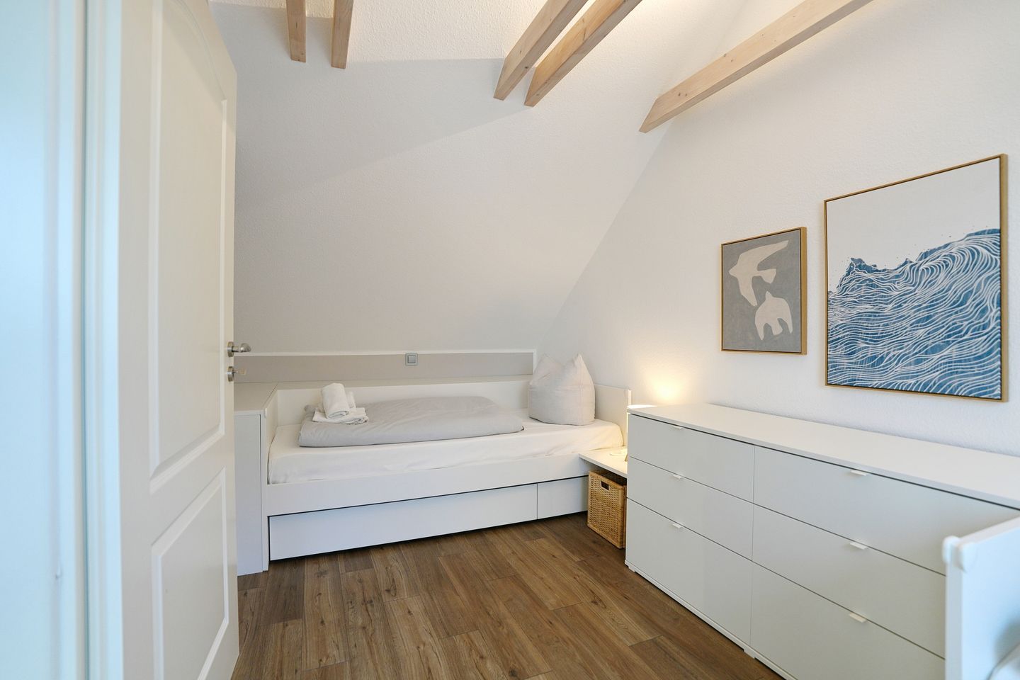 Im Dachgeschoss befindet ein zusätzlicher kleiner Wohnbereich, der ebenfalls mit einem TV ausgestattet ist.
