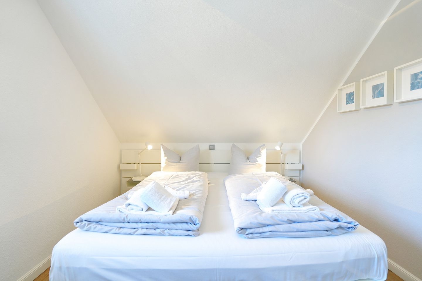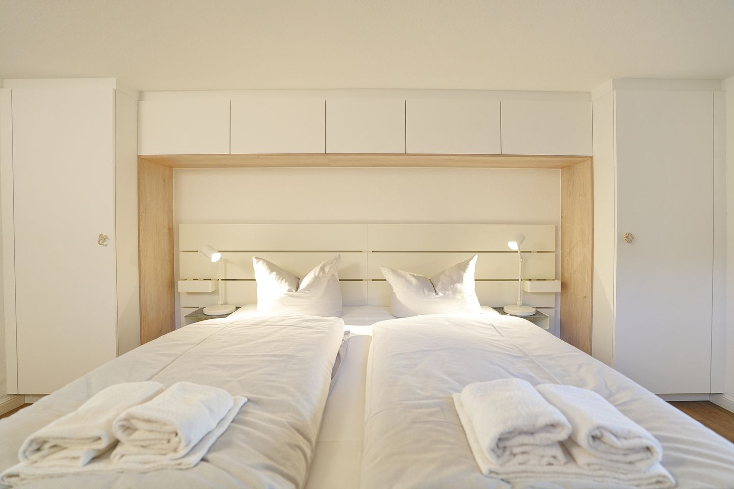 2 Schlafzimmer sind mit je einem Doppelbett (1,60m x 2,00m) mit durchgehender Dunlopillo Matratze, einem LCD Fernseher, genügend Stauraum für Ihre Garderobe und ein Schlafzimmer mit zusätzlichem Kinderbett ausgestattet.