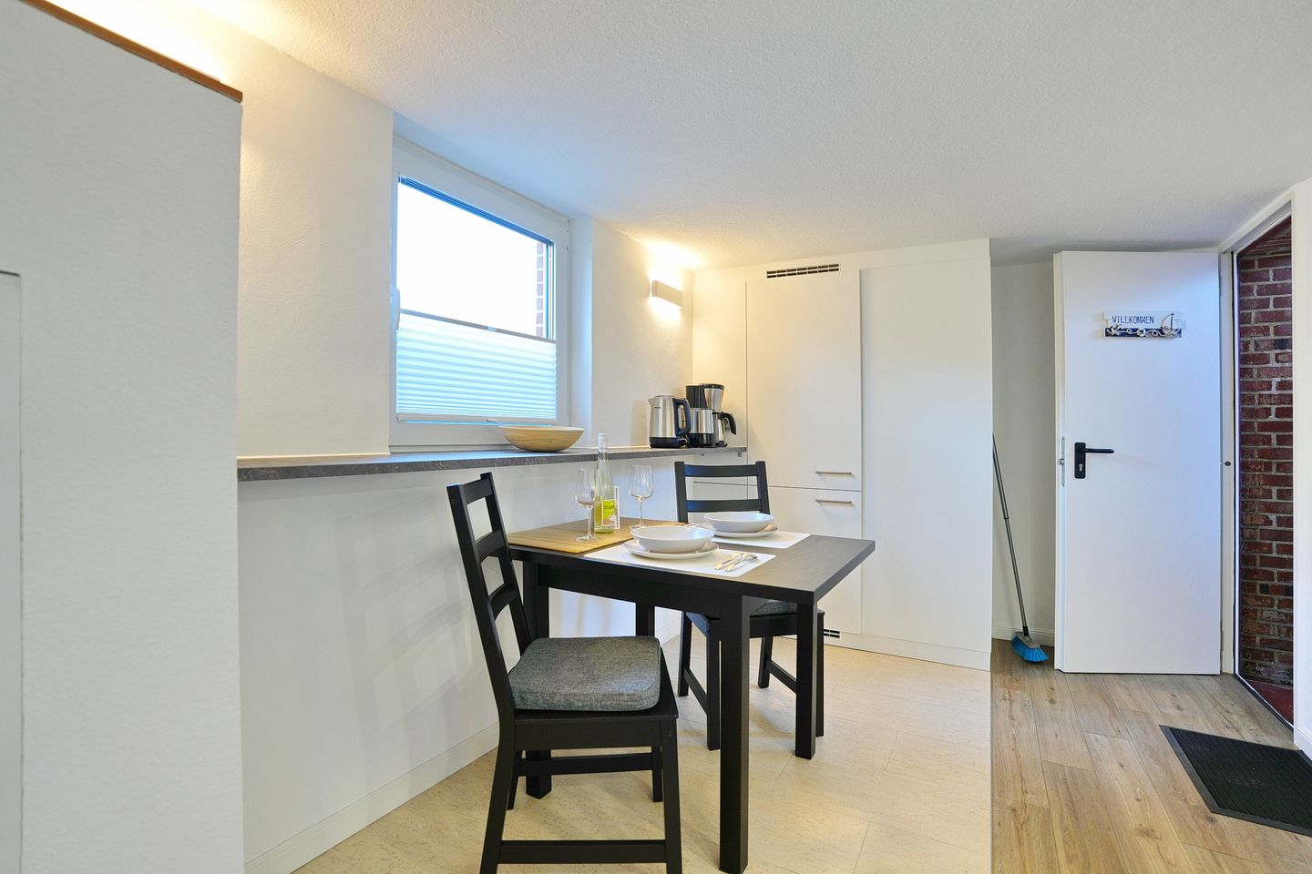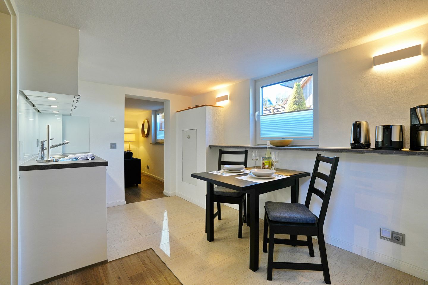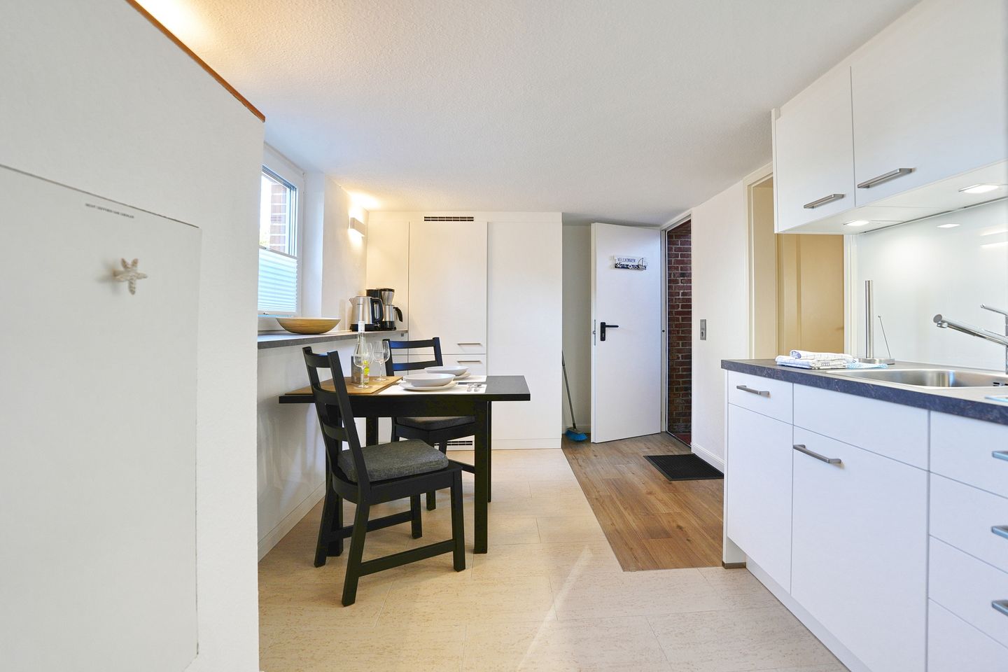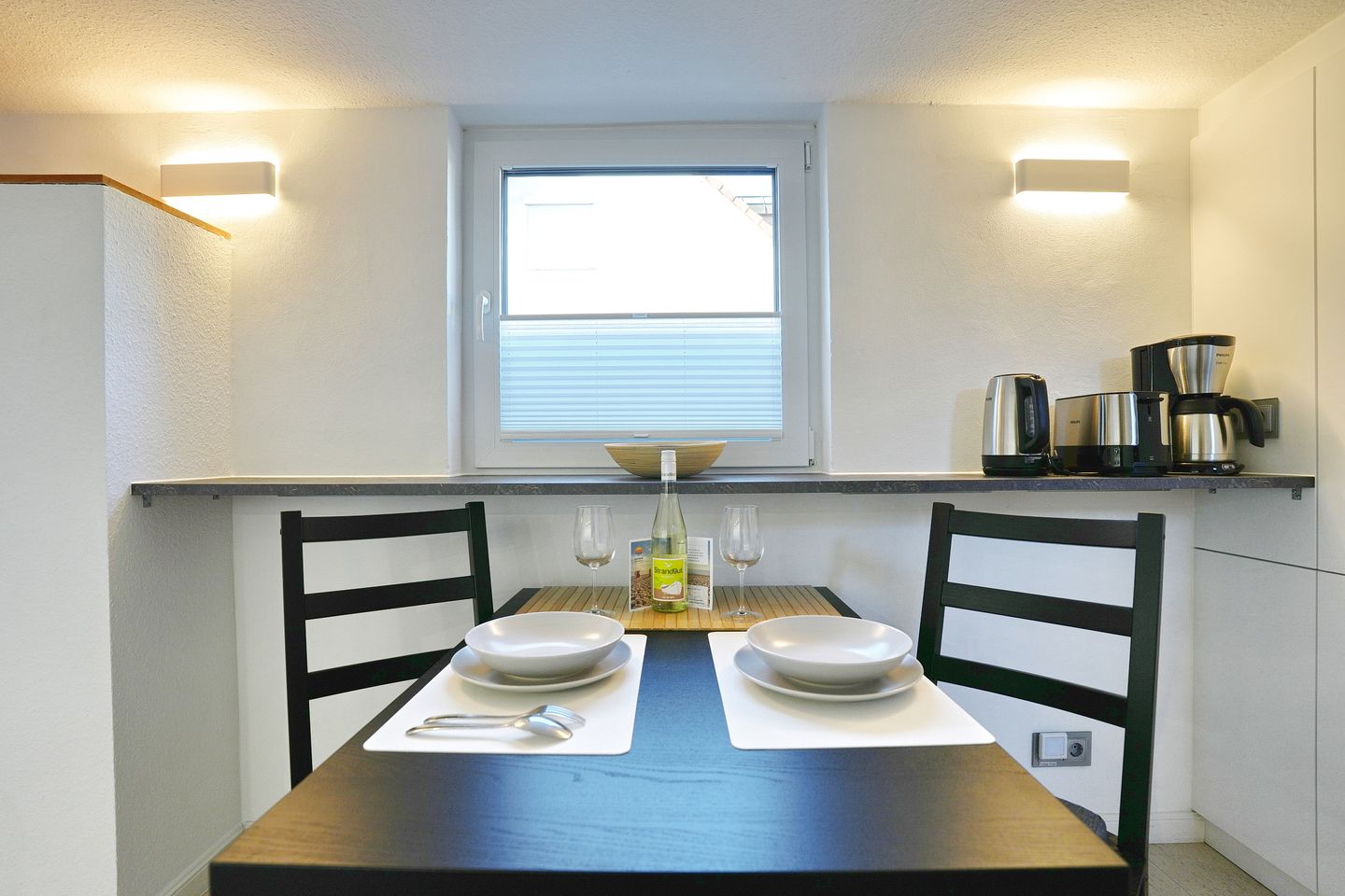 Des Weiteren gibt es eine Pantry-Küche mit Essplatz für 2 Personen und ein Duschbad mit WC.