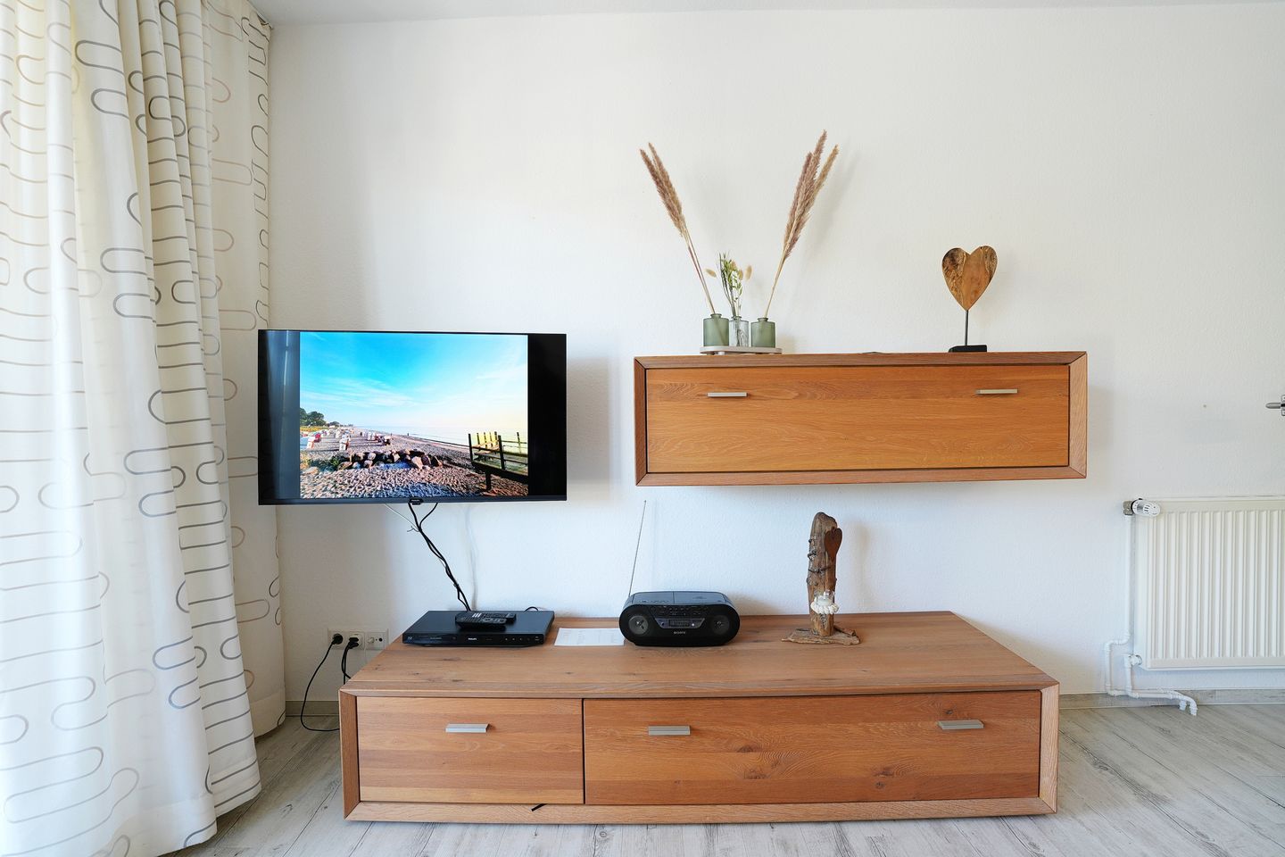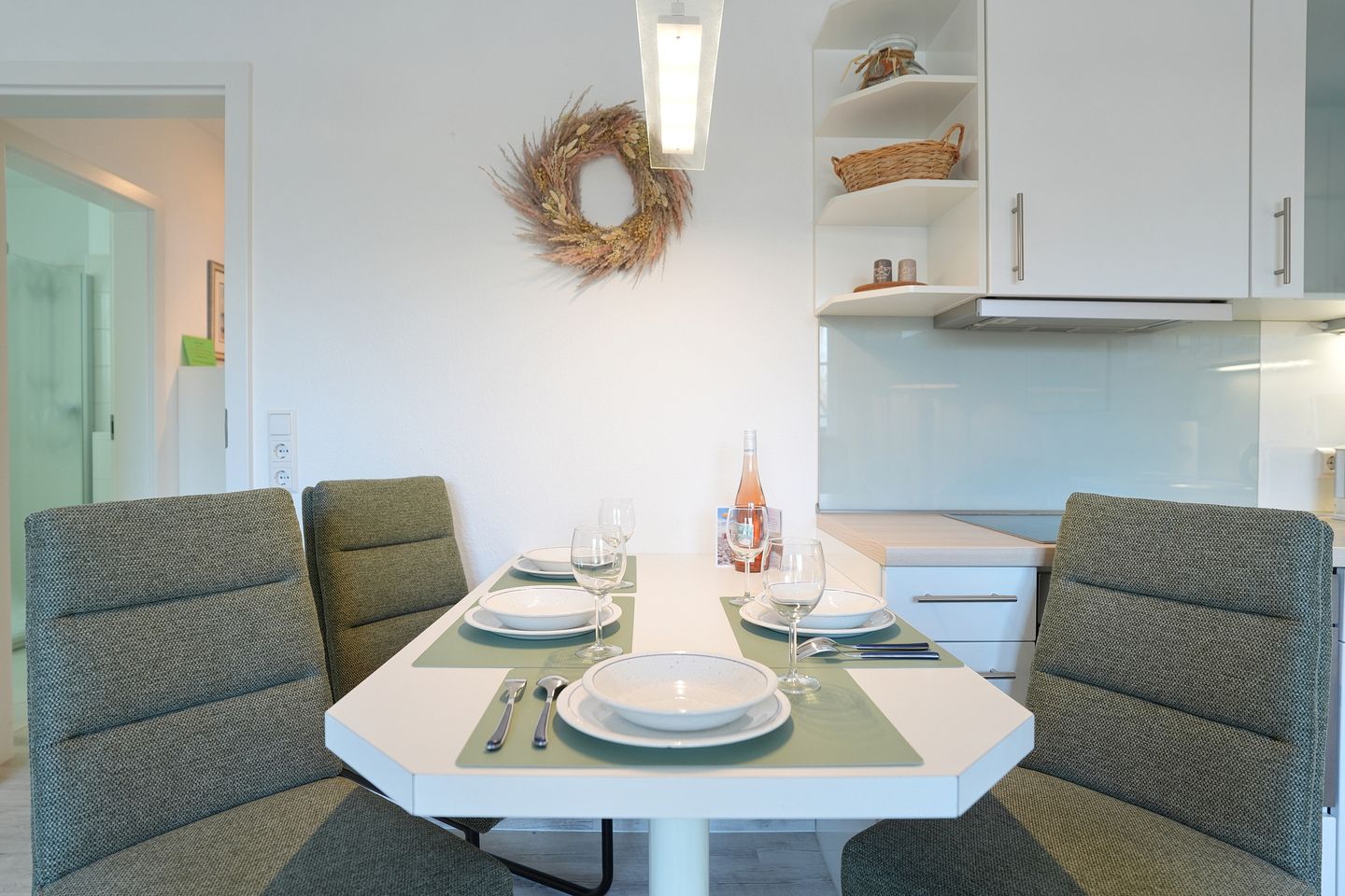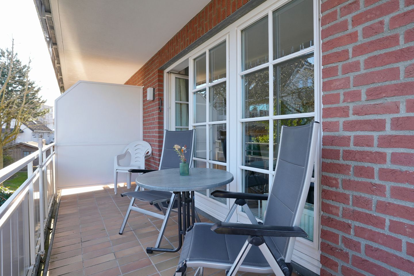 Das gemütliche Wohnzimmer lädt mit zwei hochwertigen Stressless Sesseln und einem Flachbildfernseher mit Kabel-TV und Onlinezugang zum Entspannen ein. Das Sofa (1,40 x 2,00 m) lässt sich mit wenigen Handgriffen in ein komfortables Bett ausziehen. Vom Wohnzimmer aus gelangen Sie auf den großzügigen Südbalkon, der Ihnen viele Sonnenstunden und einen schönen Ausblick bieten kann – perfekt für ein entspanntes Frühstück oder den Ausklang des Tages. In der voll ausgestatteten, offenen Küche mit Esstisch ist unter anderem ein Geschirrspüler und ein Backofen zu finden.
