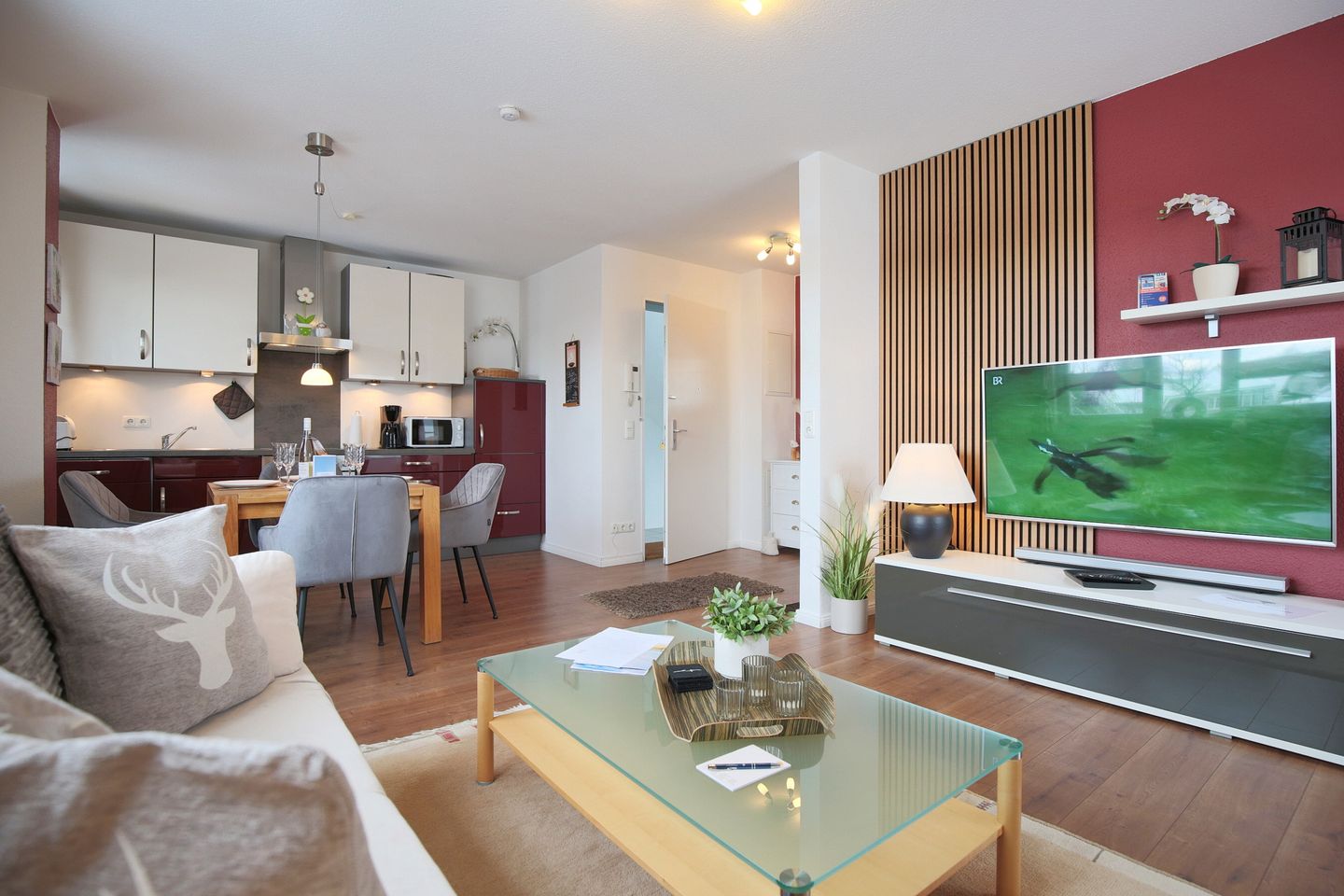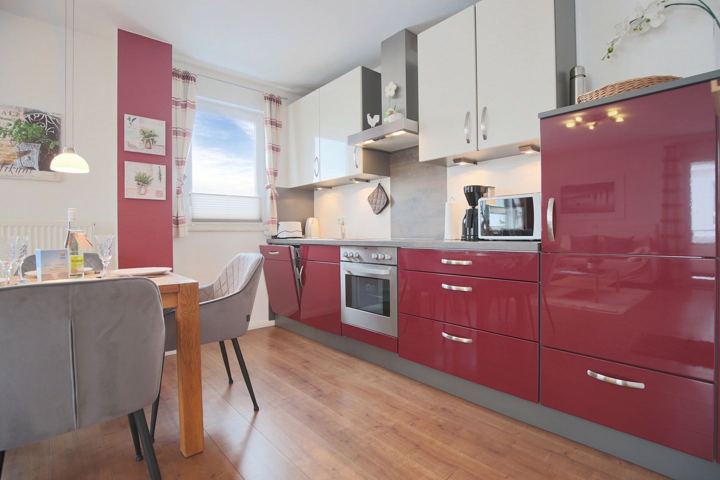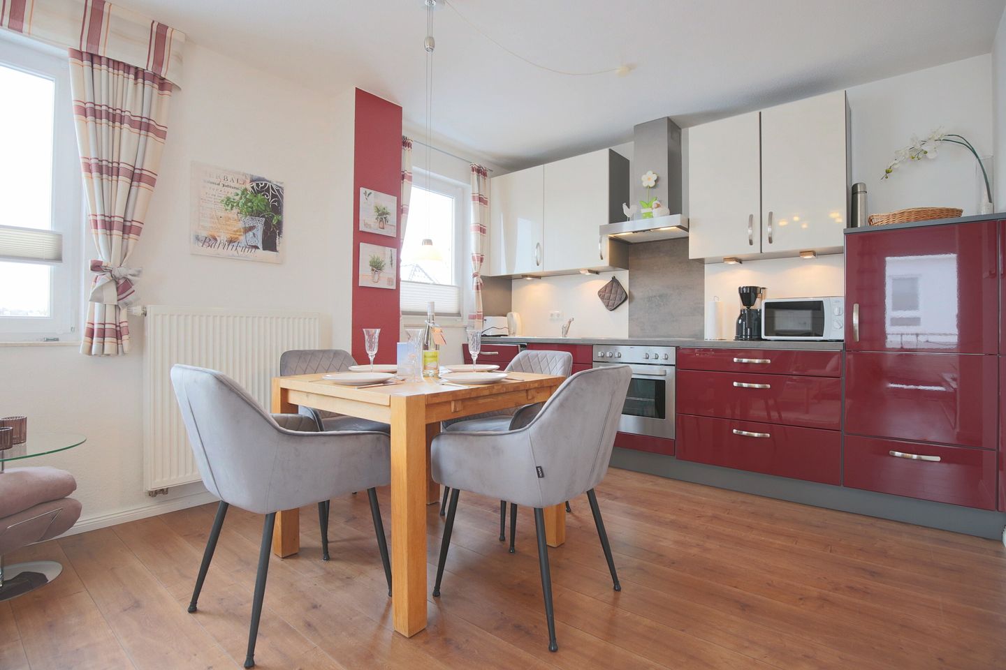 Die freundliche und moderne 2 Zimmer-Wohnung in Scharbeutz ist für 2 Personen geeignet. Sie liegt im 1. Stock mit schönem Ostbalkon. Die Wohnung verfügt über einen schönen Wohn-Essbereich, Flachbild-TV/SAT, W-LAN, Stereoanlage sowie über einen separaten Schlafraum mit gemütlichen Doppelbett 1,80 x 2,00 m. Die schöne Küche mit Geschirrspüler, Backofen mit Ceranfeld, Kühlschrank mit Gefrierfach und ein geräumiges Duschbad/WC mit Föhn lassen keine Wünsche offen.