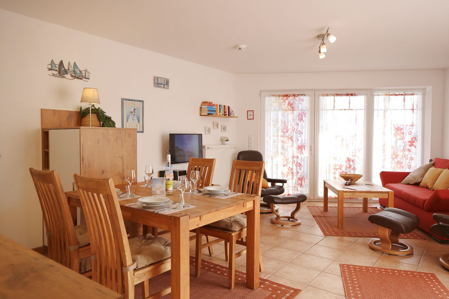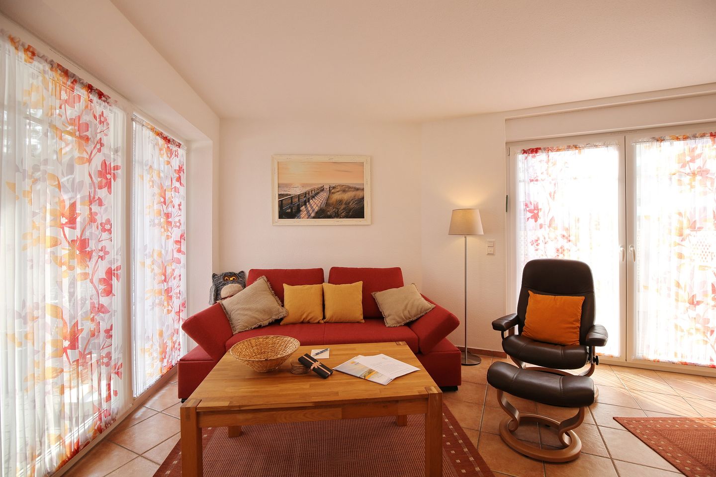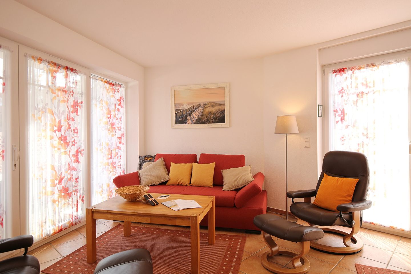 Es erwartet Sie eine moderne 2-Zimmer Wohnung im Erdgeschoss mit zwei Terrassen in Süd-Ost- und Süd-West-Lage für bis zu 4 Personen. Wohnen mit Meeresrauschen!