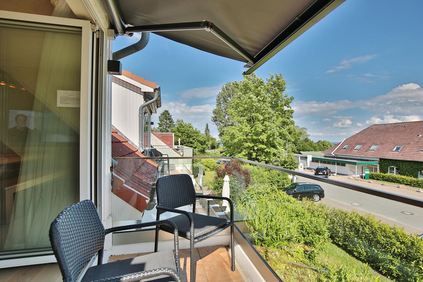 Genießen Sie den Meerblick oder den Sonnenuntergang auf unserem Balkon mit Teilmeerblick, der auch zu einem Frühstück in der Morgensonne einlädt.