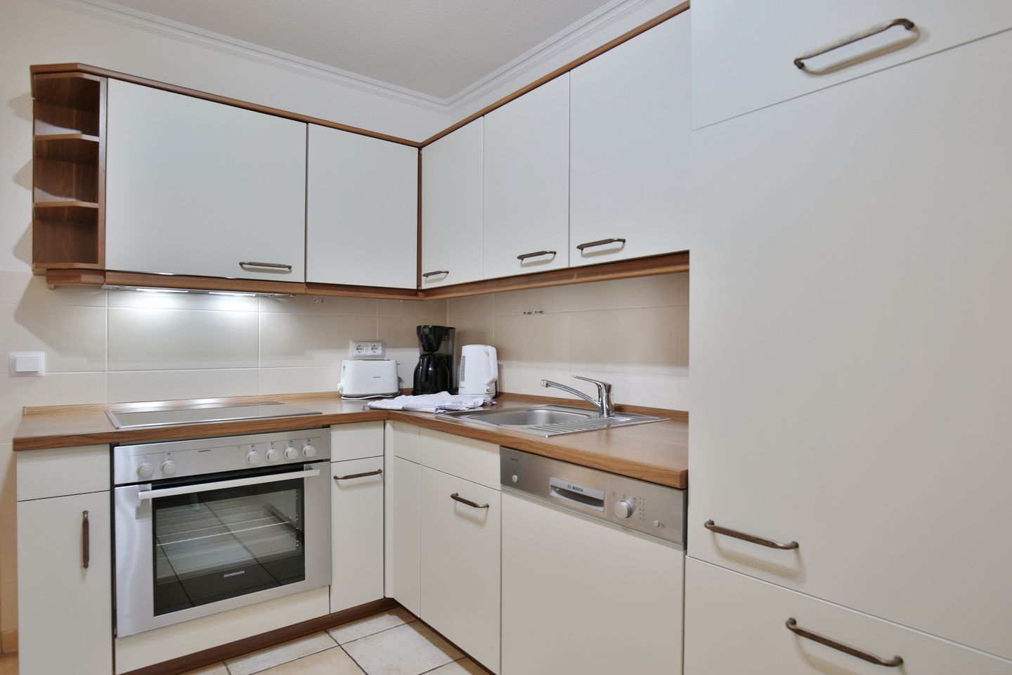 Es erwartet Sie ein gemütlicher Wohnbereich mit heller Sitzgruppe, LCD-TV und Stereoanlage. Über den Essbereich kommen Sie zur modern eingerichteten Küchenzeile, die mit Ceran-Kochfeld, Backofen, Geschirrspülmaschine und Mikrowelle ausgestattet ist.