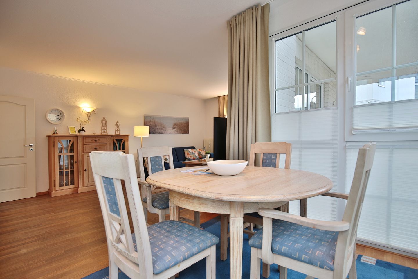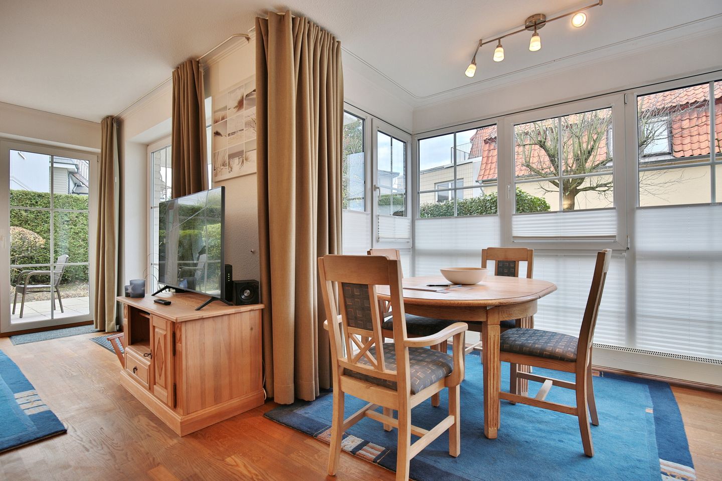 Vom Wohnbereich gelangen Sie auf die möblierte süd-west-Terrasse, auf der Sie die frische Ostseeluft genießen können. Gartenmöbel sind vorhanden und während der Saison steht Ihnen am nahegelegenen Strand ein eigener Strandkorb zur Verfügung, der inbegriffen ist.