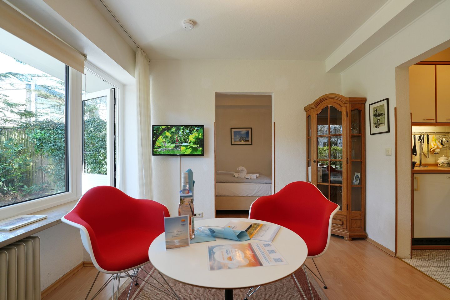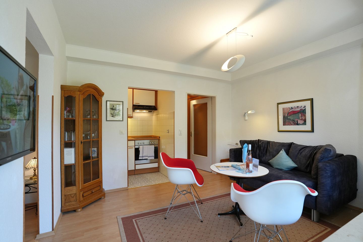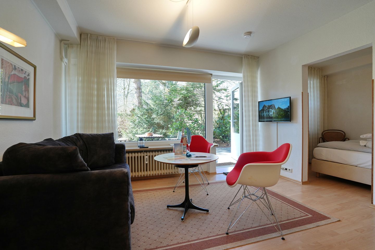 Im Wohnbereich stehen Ihnen ein Sofa, ein TV sowie ein Radio zur Verfügung.